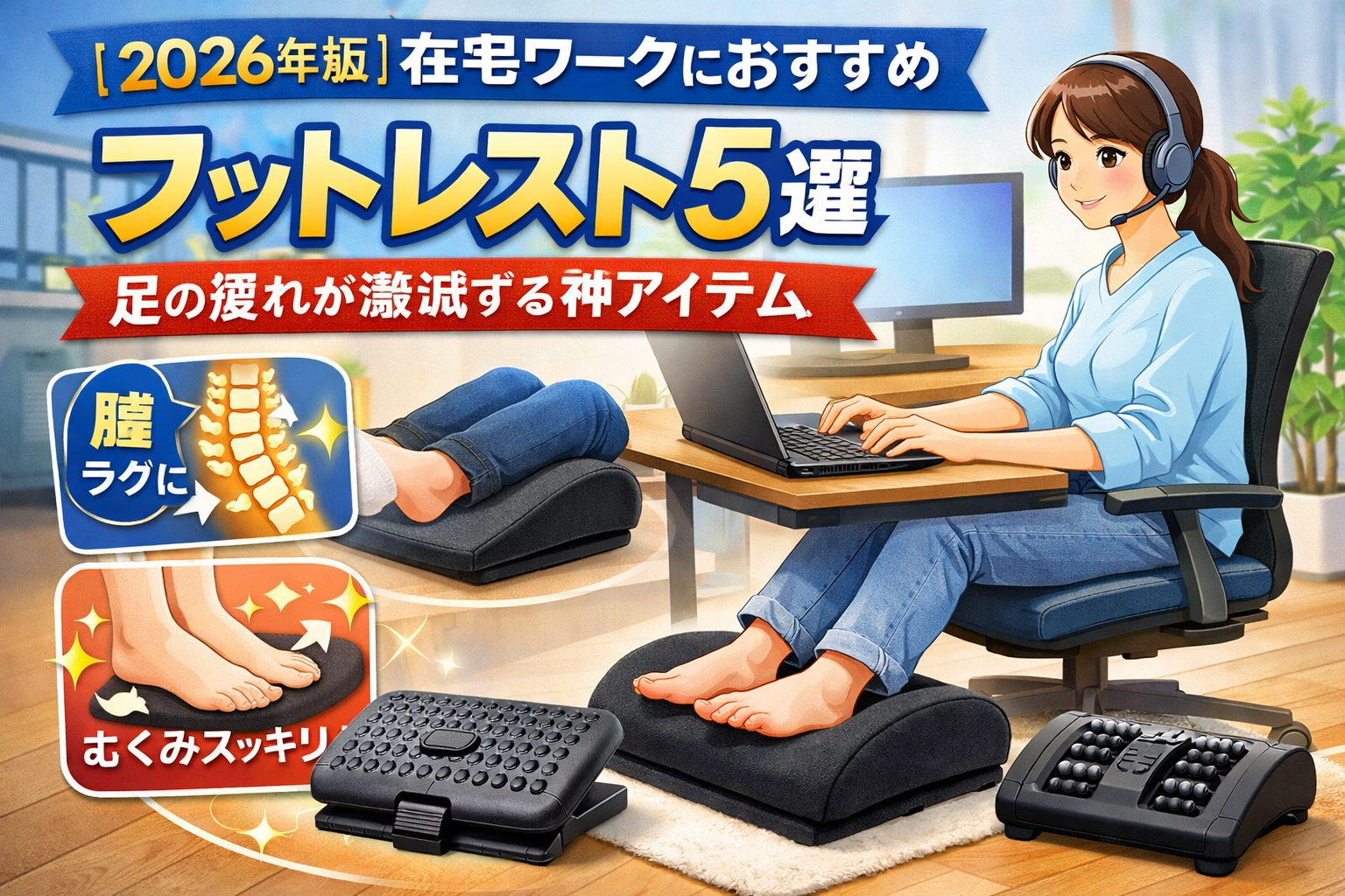 在宅ワークにおすすめのフットレスト5選を紹介します。