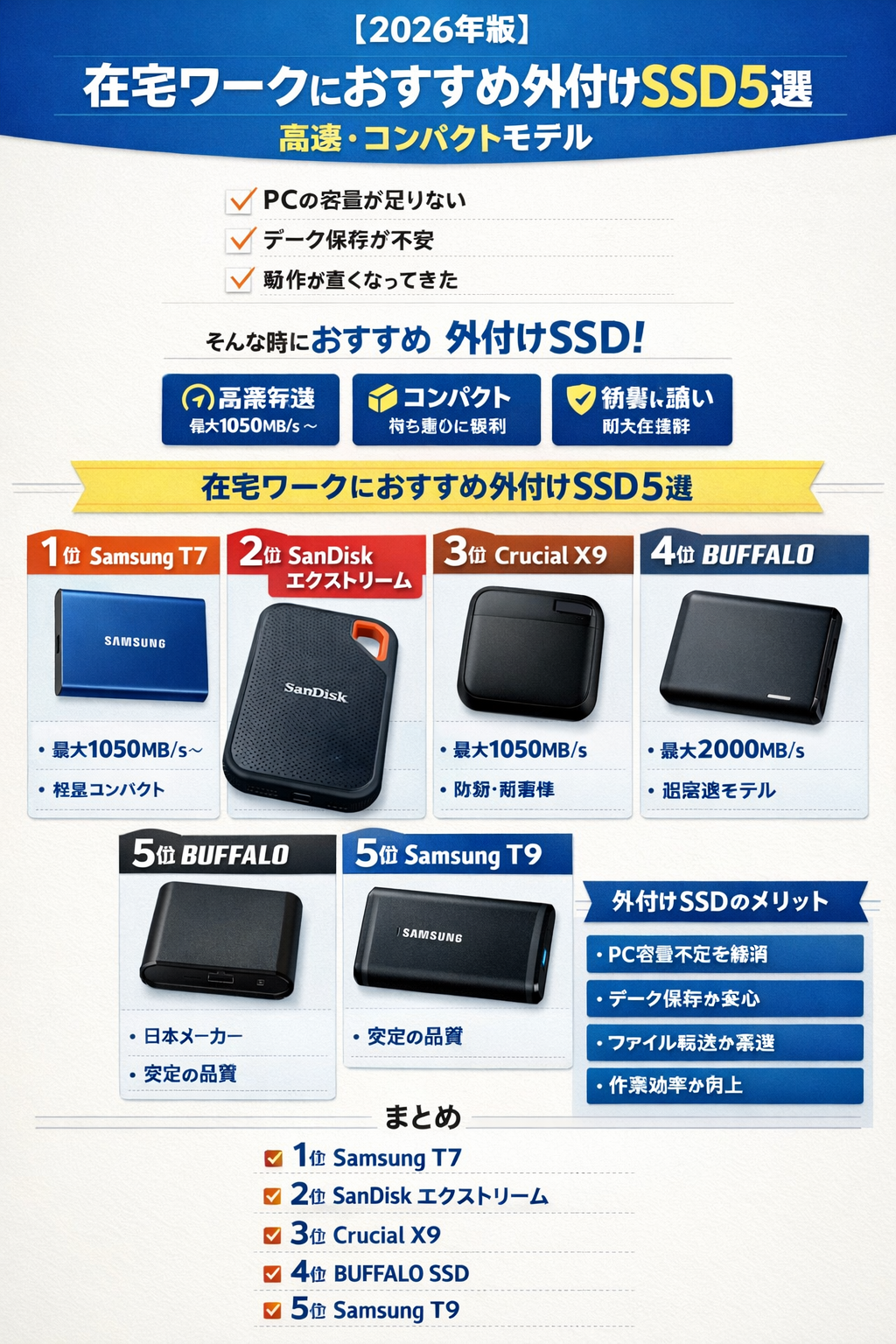 在宅ワークにおすすめの外付けSSD5選を紹介します。