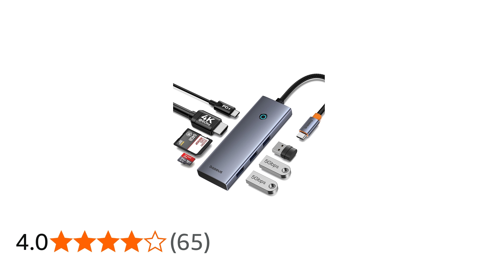 Baseus USB-C ハブ 7-in-1 4K (60hz) PD100W HDMIポート 5Gbps 高速データ転送 USB 3 SD&MicroSD カードスロット Macbook Pro Dell HP ノートパソコン iPhon...