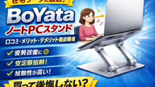 ノートPC環境 【徹底検証】BoYataノートパソコンスタンドの評判は?口コミ・メリット・デメリットまとめ 在宅ワークや長時間のノートPC作業で「首が痛い」「姿勢が悪くなる」と感じていませんか?ノートパソコンスタンドの中でも人気なのがBoYataノートパソコンスタンドです。この記事では、実際の口コミやスペックをもとにメリット・デメリットを客観的に... 2026.03.01 ノートPC環境
